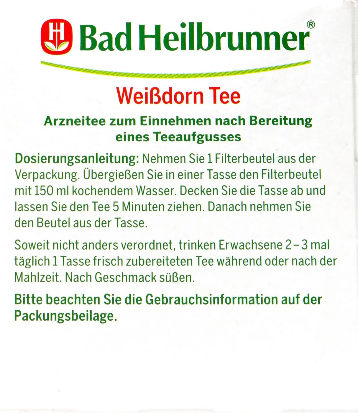 Bad Heilbrunner Weißdorntee ist ein Arzneitee. Der Tee ist ein Produkt zur Stärkung des Herz- und kreislaufsystems. Die wohltuende Mixtur besteht aus natürlichen Zutaten wie Weißdornblätter- und Blüten. Die Beutel sind biologisch frei von Metallklammern.