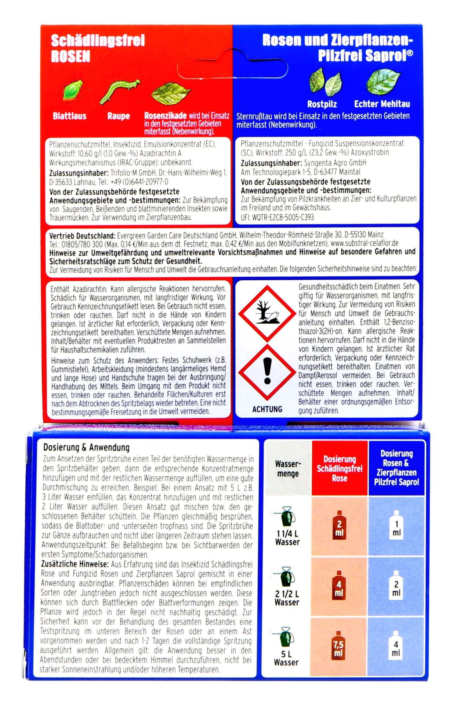 Mehr geht einfach nicht! Mit dem Combi-Rosen Spritzmittel von Celaflor bekommen deine kranken Rosen alles was nötig ist. Mit dem Rosen-Pilzfrei Saprol schützt du deine hübschen Lieblinge vor Pilzkrankheiten. Die Blumen nehmen das Mittel auf, sodass es von dort aus vorbeugend und bei beginnenden Infektionen wirkt.