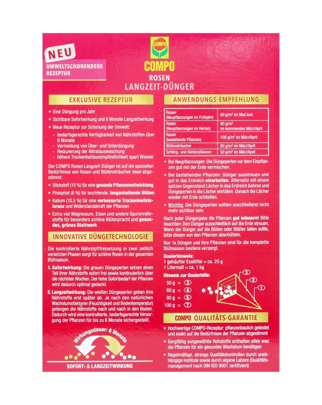 Rosenblätter im Bett, Rosenblätter in der Wanne, ja sogar Rosenblätter im Essen. Damit das Symbol der Liebe auch so richtig schön zur Geltung kommt sorgt der Rosen Langzeit-Dünger von Compo.