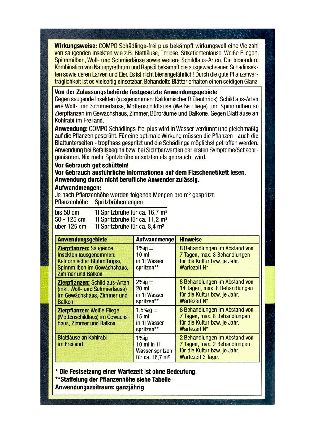 Das Schädlings-frei plus Compo bekämpft mit seiner 3-fach Wirkung ausgewachsene Schädlinge sowie deren Larven und Eier. Deine behandelten Pflanzen bekommen durch die Behandlung sogar einen Extra-Glanz. Um die Nachbarsbiene brauchst du dich nicht zu sorgen, denn die wird durch das Mittel nicht gefährdet.