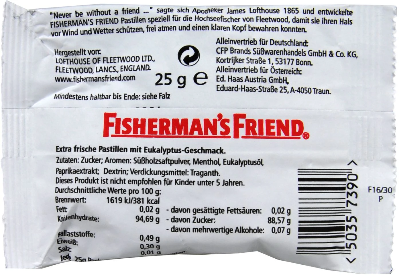 Fisherman’s Friend Eucalyptus sind extra frische Menthol-Pastillen. Seit vielen Jahren bewährt sich die