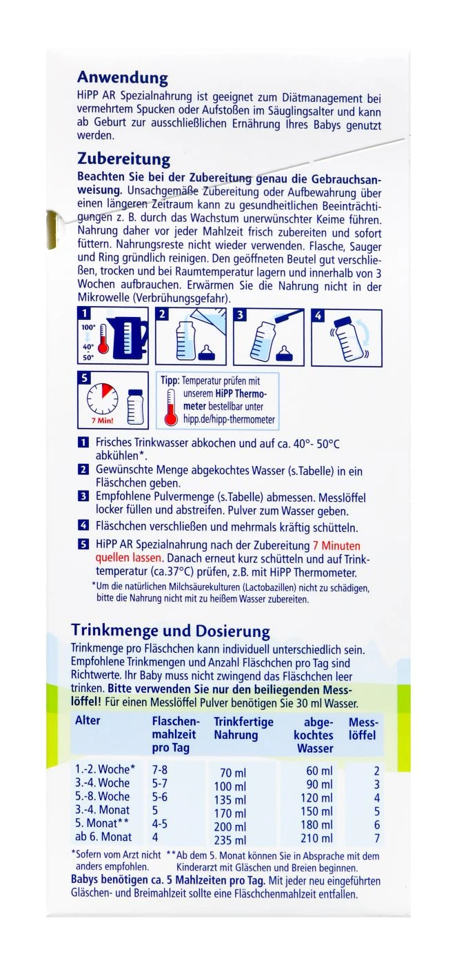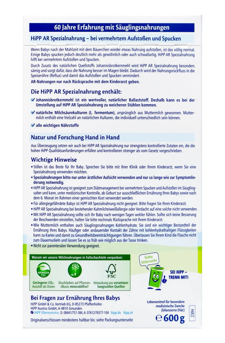Hipp Anti-Reflux Spezialnahrung wirkt gegen häufiges Aufstoßen und Spucken. Durch die Nahrung wird verhindert, dass aufgenommene Speisen in die Speiseröhre zurückfließen. Das enthaltene Johannisbrotkernmehl vervollständigt die Wirkung, indem es als Quellstoff dafür sorgt, dass die Nahrung im Magen bleibt.