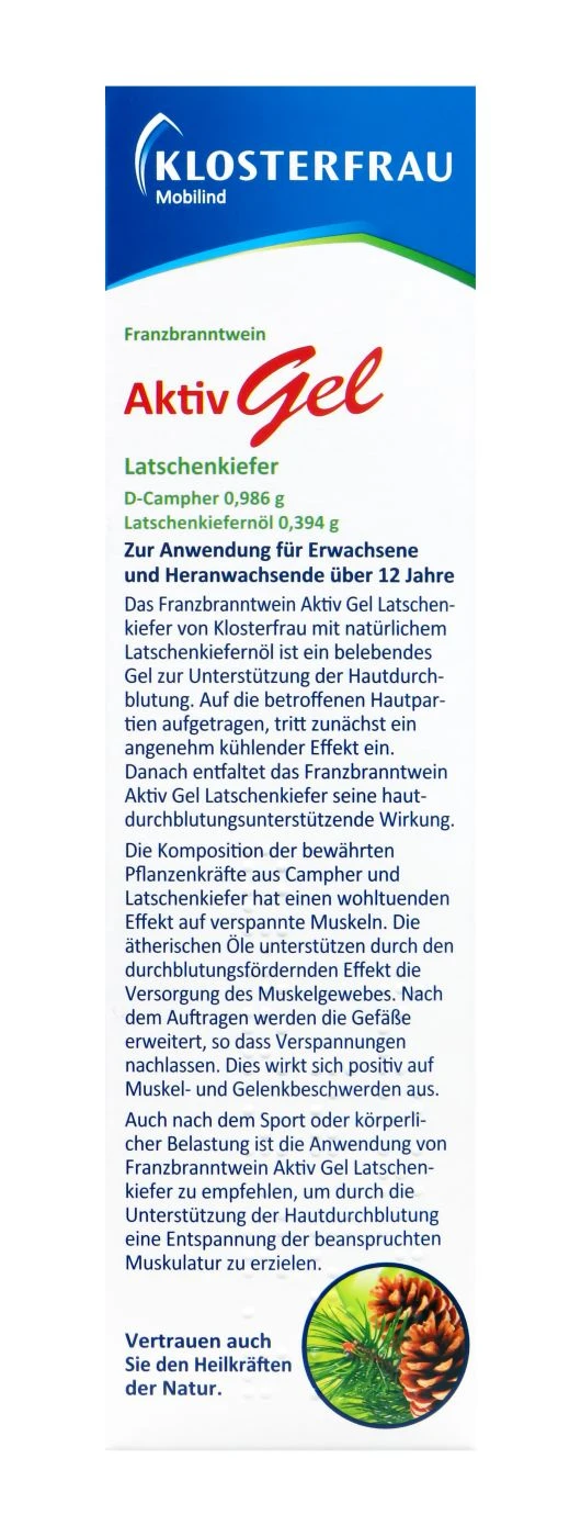 Klosterfrau Franzbranntwein Aktiv Gel ist ein pflanzliches Gel mit Latschenkiefer. Das Gel ist sehr gut